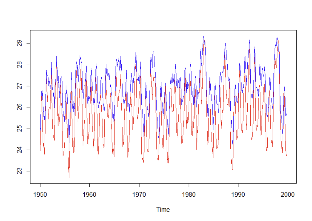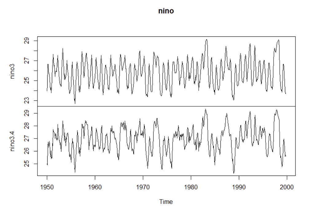 독립변수가 시간이라면, 종속변수가 nino3 와 nino3.4 입니다. 따라서 다변량 시계열 자료입니다.